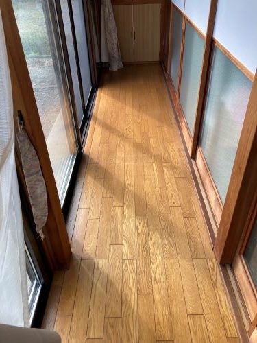 「廊下全体にぴったり収まって、隙間や浮きが一切ない仕上がりにしたい」という思いで作業を進めました。