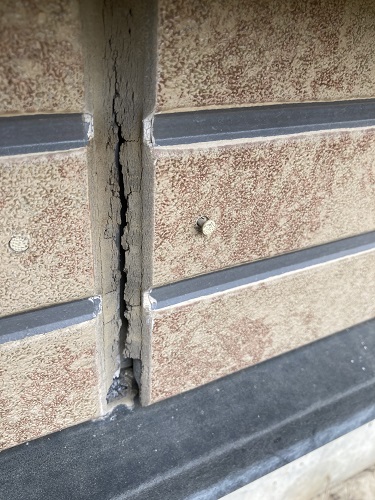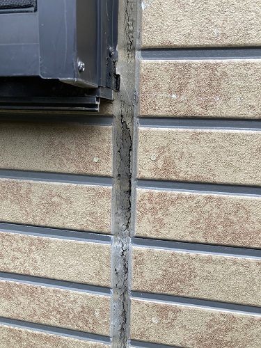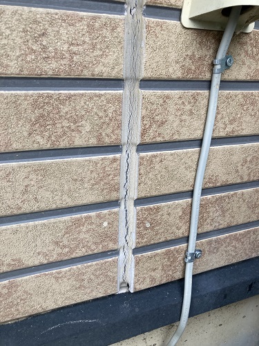 外壁の継ぎ目を詳しく確認すると、シーリングには細かなひび割れが入り、一部では剥がれてボロボロになっている箇所も見受けられました。