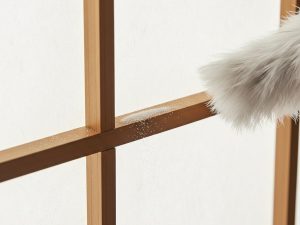 桟(さん)の角や細かい部分は、柔らかい刷毛やハタキを使うと、奥までしっかりホコリを取り除くことができます。